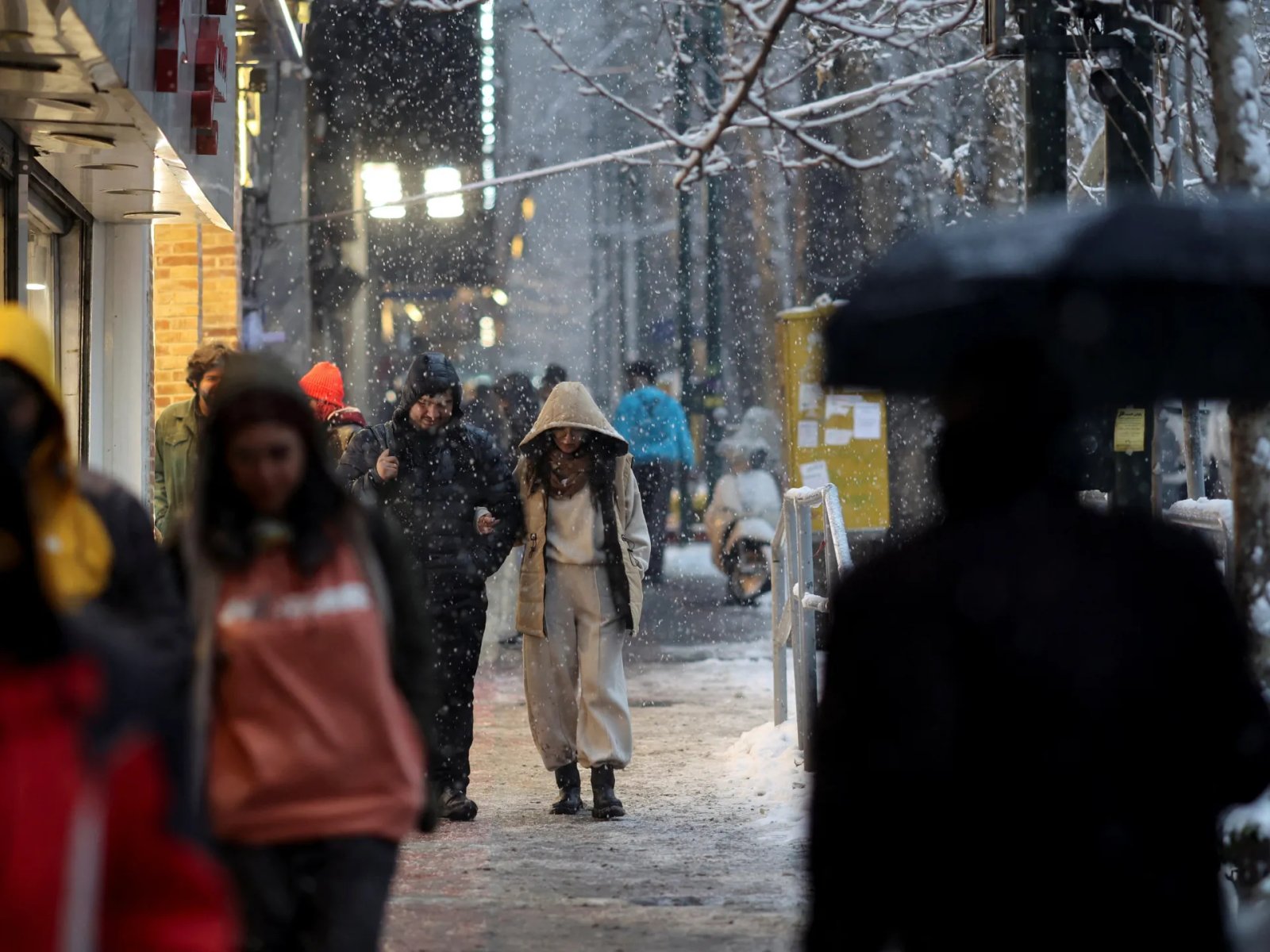 People walk along a street during snowfall in Tehran, Iran, January 23, 2026 [Majid Asgaripour/WANA (West Asia News Agency) via Reuters]