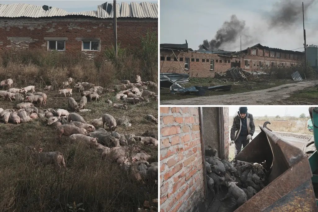 豬的總數在烏克蘭的一個農場中如此溫和,Drune Warrone警告襲擊了大火,報告了緊急服務。