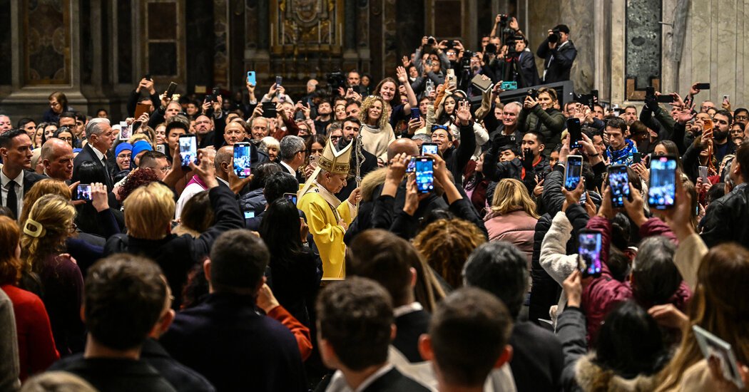 教皇利奧在平安夜彌撒前給聖彼得人群帶來驚喜