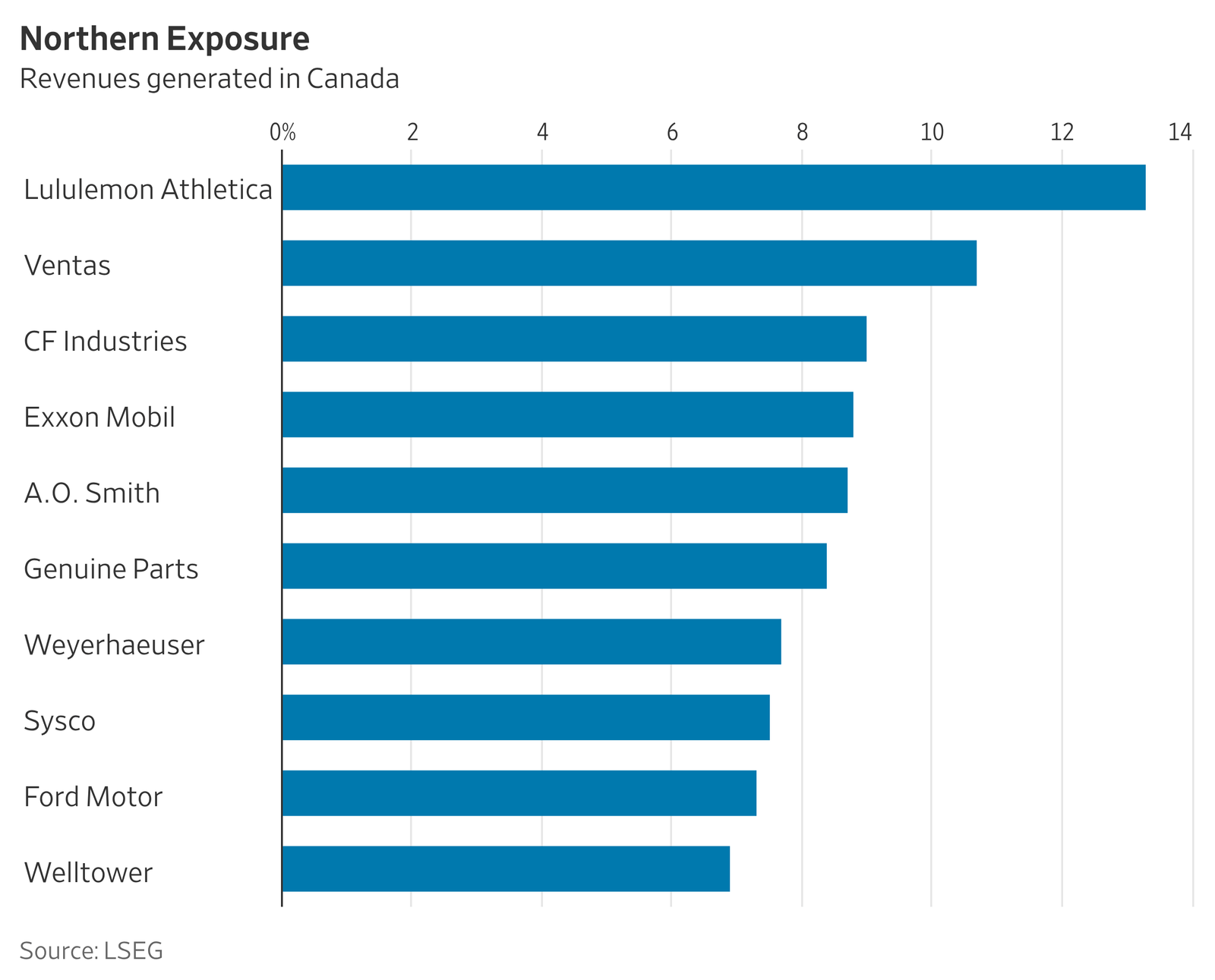 對於美國一些最大的上市公司來說,與加拿大日益加深的貿易戰帶來了真正的財務風險。埃克森美孚和福特汽車等十幾家主要上市公司在最近一個財年中至少有 5% 的銷售額來自美國北部鄰國。根據金融數據提供商 LSEG 的數據,超過 20 家公司的銷售額至少佔該地區銷售額的 2%。 (標籤翻譯)