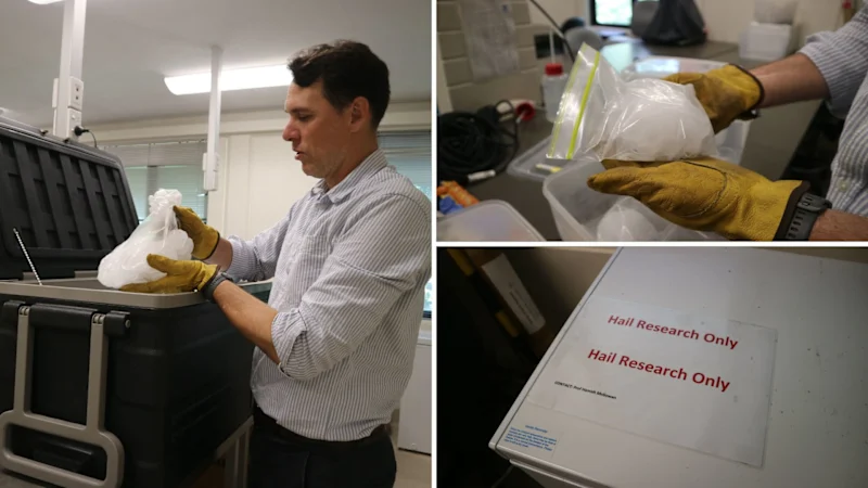 這位女士告訴梅森,她認為這些冰雹不會被研究,但他必須把它們拿走,因為她向孩子們承諾過他會這麼做。 “這裡有一些好的冰雹,”他在實驗室檢查這塊冰塊時說道,並在冰塊變得太冷而無法觸摸之前徒手旋轉它。這是最近一場風暴捐贈的一塊大冰雹。圖片來源:Dominique Tassell 但是,那位祖母還給了梅森一塊 15 厘米的冰雹,這將幫助科學家更多地了解冰雹是如何形成的,以及冰雹是如何形成的。一場風暴過後,超過 140 個郵政編碼區收到了超過 16,000 份索賠,此次風暴季節的冰雹已經觸發了保險災難聲明。梅森從一所房子裡收集了“巨大”的石頭,這些石頭大小相似,但形狀不同。 “這是我們有興趣了解的另一件事——在單一地點會出現的變化。”冰雹在倫敦大學存儲和記錄。昆士蘭。信用:Dominique Tassell 融化然後重新凍結的冰雹提出了一個問題:如何準確測量在到達之前融化的東西? “以這種方式收集(冰雹)是一個真正的問題,”梅森說。 “實際上,存儲起來非常非常困難。”有些石頭落地時可能不會完全凍結,而存儲它們就意味著將它們完全凍結。加載“即使盡最大努力存儲它們,實際上也改變了我們所看到的東西。“所以,是的,這很複雜。 ”撞擊後拍攝的照片可以幫助科學家確定冰雹最初有多大。科學家稱重並測量冰雹,然後從各個角度拍攝照片,以便他們可以創建 3D 掃描或梅森說:“我們進行這些掃描並將其打印出來,然後我們可以在風洞中對其進行測試,以觀察從不同方向作用在石頭上的力。這有助於科學家了解石頭上的阻力係數,或者它在穿過風暴時遇到的阻力有多大。捐贈的冰雹被收集起來,然後儲存在昆士蘭大學的冰櫃中,稱為冰雹庫。圖片來源:Dominique Tassell“如果我們了解阻力係數,我們就會了解石頭的速度有多快“如果我們了解它下落的質量和速度,那麼我們就可以確定它將向所擊中的任何物體傳遞的能量。 ” 記錄下冰雹的大小後,就可以將冰雹切開並進行檢查。內部層和核心將講述其形成的故事。在一個名為“冰雹網”的項目下,昆士蘭大學的團隊將在未來七年內從昆士蘭州東南部 10 個冰雹多發地點收集冰雹和風力數據。首次同時研究冰雹和風力,以評估兩者同時發生時會發生什麼。監測站位於城市、半農村和農村地區,以評估冰雹對基礎設施(包括太陽能電池板和不同類型農作物)的損害。梅森說:“某些作物在生長的早期階段就被消滅了。 ”一些作物,如菠蘿和鱷梨,可能需要數年時間才能從損害中恢復過來。這項研究可能會導致基礎設施更能抵抗冰雹。這些數據還將幫助研究人員更好地了解天空中雷達檢測到的冰雹與落在地面上的冰雹之間的關係。研究人員進一步的目標是建立一個可公開訪問的網站,該網站將提供有關每個站測量的冰雹的實時信息。