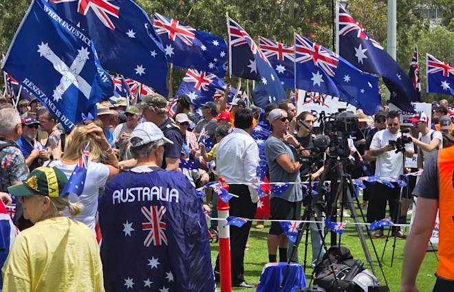 2026 年 1 月 26 日 — 下午 3:31 保存您已達到保存項目的最大數量。從保存的列表中刪除項目以添加更多項目。保存本文以供日後將文章添加到您的保存列表中,並隨時返回。知道了AAA今天下午,數千名抗議者湧入珀斯中央商務區,並舉行了兩次單獨的集會,以紀念澳大利亞國慶節公共假期。布爾盧/珀斯入侵日抗議活動於中午在福雷斯特廣場開始。有組織的遊行穿過城市,前往斯特靈花園。中午,另一群抗議者在惠靈頓廣場聚集,名為“為澳大利亞遊行”。在澳大利亞國慶日,人群聚集在珀斯舉行的“為澳大利亞遊行”集會。邁克爾·菲利普斯根據宣傳該活動的 Facebook 頁面,今年的珀斯“為澳大利亞遊行”集會似乎更多地關注澳大利亞國慶日,並將公眾假期定在傳統日期。大約有 1000 名人群,其中許多人披著澳大利亞國旗,西澳一國黨領袖羅德·卡迪斯(Rod Caddies)高呼“澳大利亞人,澳大利亞人,澳大利亞人”。 “自由黨在哪裡,工黨在哪裡,國民黨在哪裡?”他問道。 “他們不在這裡是因為太害怕,但一國黨卻不是。讓我告訴你我們在爭取什麼——言論自由的權利。”類似的集會已經在澳大利亞其他主要首府城市開始,數千人利用國慶節表達自己的觀點。悉尼,在海德公園舉行的入侵日集會以向卡傑利戈湖槍擊事件的受害者致敬為開場。抗議活動中展示了據稱被謀殺時懷孕的受害者索菲·奎因、她的伴侶約翰·哈里斯和索菲的姨媽內里達·奎因的照片。抗議者舉著在卡傑利戈湖被槍殺的索菲·奎恩的海報。在墨爾本,兩次集會都有數千人參加人們很堅強,入侵日遊行的規模估計至少是澳大利亞遊行規模的兩倍。 1 月 26 日,阿瑟·菲利普州長在悉尼灣升起英國國旗的那一天,被正式定為澳大利亞日,但全國各地許多人將這一天標記為“入侵日”,承認澳大利亞原住民被剝奪。西澳警方發言人表示,當地官員在集會中保持了強大的力量。她說:“我們將在多個地點維持高度可見的警力,以支持每個人的安全與和平活動。雖然沒有情報表明西澳存在任何嚴重的威脅,但這些高可見度的巡邏已經到位,以提供保證並表明我們對維護社區安全和防止傷害的承諾。”這位女發言人補充說,西澳警察部隊尊重個人表達意見的權利,並且只會當抗議活動變得非法、無序或對公共安全構成威脅時,他們會進行干預。她說:“如果有合理理由認為有人可能破壞和平,警察可能會發出離開通知。危險或非法行為,包括展示違禁標誌,將導致警方迅速採取行動。西澳警察部隊鼓勵每個人照顧好自己和他人,保持對周圍環境的了解,並幫助確保社區度過安全和受尊重的一天。”全州警務行動維護社區安全。 ”保存您已達到保存項目的最大數量。從保存的列表中刪除項目以添加更多。來自我們的合作夥伴