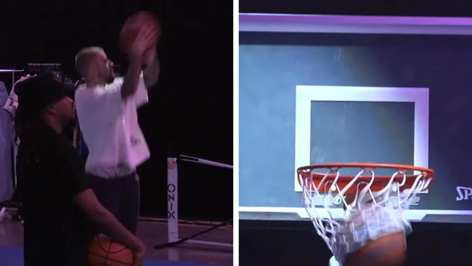 賈斯汀·比伯在首個 Twitch 直播中投籃
