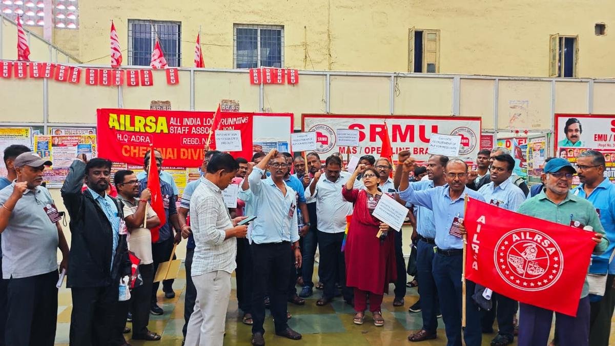 全印度Loco跑步人員協會成員周二在該市舉行抗議|圖片來源:特別安排 週二,南方鐵路機車飛行員發起絕食,提出各種訴求,包括填補懸而未決的助理機車飛行員(ALP)空缺。機車駕駛員要求解除他們駕駛火車的任務,以便將火車穩定在鐵路站內。機頭飛行員抱怨說,由於未填補 ALP 的空缺,導致機頭飛行員被迫長時間工作,造成健康問題。這也給公眾帶來了不便。全印度機車運行人員協會(AILRSA)中央組織秘書巴拉錢德蘭表示,要求包括將公里津貼(KMA)增加25%,類似於其他鐵路工作人員的旅行津貼,免除70%的KMA所得稅,以及加快部署已招募的ALP。此外,機頭飛行員還要求在總部休息 16 小時,並定期休息 30 小時。南方鐵路金奈分部運營著數百輛郊區、郵政和特快列車,主要面臨機車駕駛員短缺的問題。為了解決機車飛行員短缺的問題,南方鐵路甚至計劃招募退役機車飛行員,但遭到AILRSA以安全為由的強烈反對。交通活動人士達亞南德·克里希南 (Dayanand Krishnan) 在最近通過《信息權 (RTI) 法案》獲得的數據中發現,僅金奈分部就存在 461 個職位空缺,其中包括客運機頭飛行員、汽車司機、郵件機頭飛行員和貨運機頭飛行員。蒂魯奇、馬杜賴和塞勒姆師的空缺數量很少。此外,欽奈分部的機車飛行員也因職位空缺而承受著不成比例的工作量。社會活動家 T. Sadagopan 表示,郊區火車機車駕駛員的空缺導致所有路段(尤其是西路段)的多項服務減少,給從 Arakkonam 和 Tiruvallur 出發的通勤者帶來困難。發布 – 十二月 03, 2025 05:30 am IST