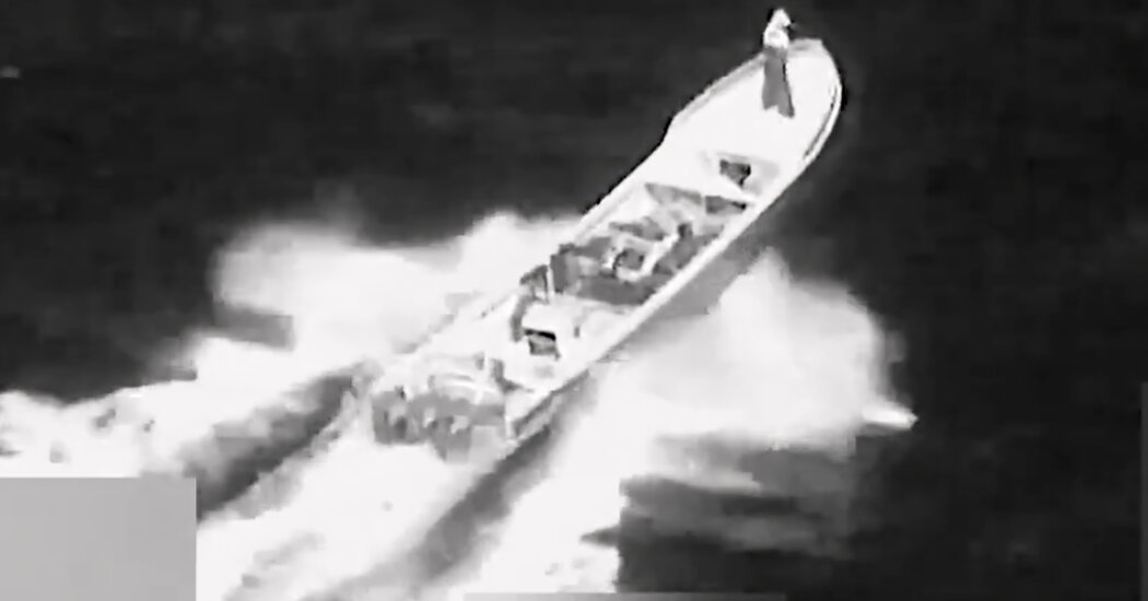 An image from a video released by the U.S. Southern Command showing a vessel accused of trafficking drugs in the eastern Pacific Ocean on Friday.Credit...U.S. Southern Command, via Associated Press