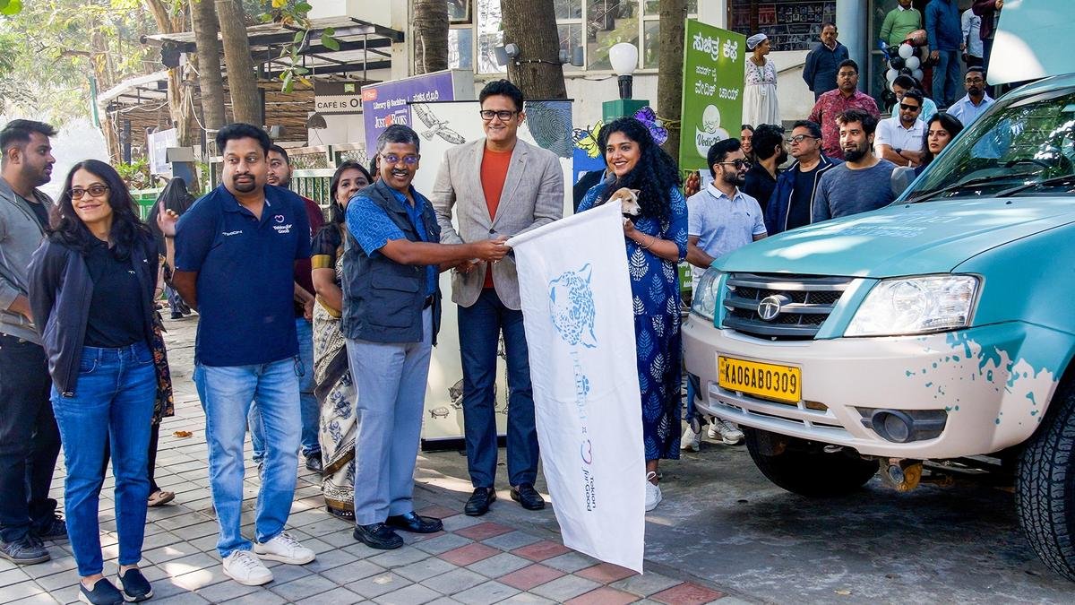 阿尼爾·坎布爾 (Anil Kumble) 在班加羅爾為移動野生動物救護車掛旗