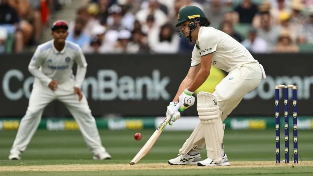 康斯塔斯(Konstas)在幾乎三個球後重複了相同結果的快照,因為球將草和邊界繩子碰到,直到被判斷為四個。