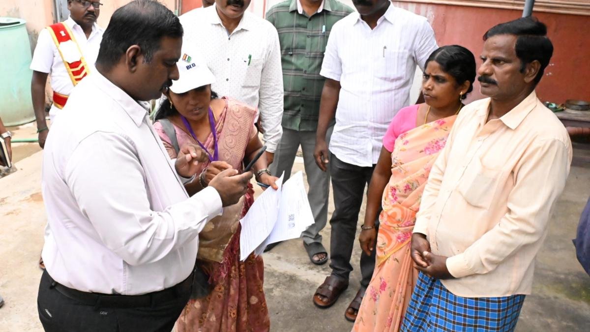 週二,收集員 K Dinesh Kumar 在克里希納吉里的 Kattinayanapalli panchayat 檢查了選民計票工作。 |照片來源:BASHKARAN N 一場特別密集的選民統計工作在這裡開始,投票站官員於週二開始統計所有六個議會部分的選民。收集員 K Dinesh Kumar 檢查了 Kattinayanapalli panchayat 的 Krishnagiri 議會選區的選民計票工作,在那裡向第 38 選區的選民 Mohan、Amutha 和 Arun 分發了 BLO 轉移表格。他還參觀了 Bargur 選區 Vattaranapalli panchayat 的 Kanchana 選區 Krishnamurthy 的房子,親眼目睹了人口普查過程,並向人口普查局尋求澄清。布魯。 BLO 將挨家挨戶拜訪並向所有現有選民分發人口普查表。選民將填寫表格,附上護照尺寸的照片,並將表格提交給 BLO。 BLO 必須走訪每戶至少 3 次才能進行這項活動。要登記新選民,必須收集表格 6 和附件 IV 中指定的自我證明。該程序還將識別已故選民、永久移民選民和具有多個選民登記的選民。進行人口普查時,無需提交任何文件。所有已簽名的登記表已被收集的選民的姓名將包含在草稿名單中。 BLO 的到來將通過政黨公認的代表以及 BLO 本身傳達給選民。轉學表格必須正確填寫並在截止日期前提交。轉賬表格也可以從 https://mtgamer.com 下載,正確填寫、簽名並拍照後提交給 BLO。特別密集修訂將持續到12月4日,選民名單草案將於12月9日公佈。發佈時間 – 2025年11月4日 06:21 PM IST