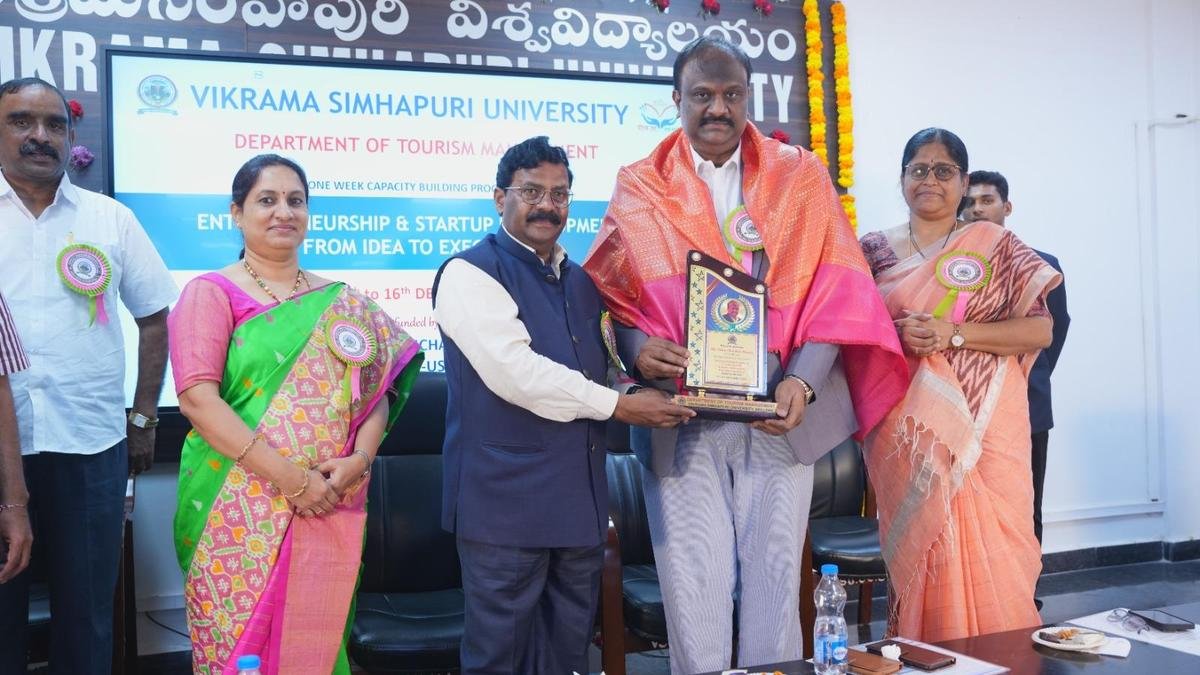 週四,Vikrama Simhapuri 大學副校長 Allam Srinivasarao 在內洛爾區 VSU Kakutur 校區的特別培訓項目中向 Sri Venkateswara 大學 RUSA 首席執行官 Vamsi Krishna Rayala 表示祝賀 |圖片來源:BY ARRANGMENT Sri Venkateswara 大學 Rashtriya Uchchatar Shiksha Abhiyan(SVU RUSA)首席執行官 Vamsi Krishna Rayala 在“創業和初創企業發展能力建設項目 – 從創意到執行”中建議學生塑造初創想法,以滿足國際標準。為期一周的特別培訓計劃在 SPSR Nellore 的 Vikrama Simhapuri 大學 (VSU) Kakutur 校區舉行區,週四。 Vamsi Krishna 先生就初創企業的重要性、將商業想法轉化為可執行計劃的策略以及工業領域的機會提供了寶貴的見解。 “創業公司要想成功,光有一個好主意是不夠的,學生必須了解市場研究、財務規劃、風險管理、產品驗證和客戶反饋等關鍵方面,”他解釋說,並解釋了政府和私人組織為企業家提供的各種孵化支持、資助計劃、創業補助金和指導機會。 SVU RUSA 首席執行官強調,勇氣、持續學習、人際網絡和強大的技術知識在克服創業之旅中的挑戰方面發揮著重要作用。學生們積極參與,就創業啟動、商業模式、與投資者溝通等問題進行提問,Rayala 先生對此進行了詳細的解釋。 VSU 副校長 Allam Srinivasarao 表示,此類能力建設項目對於將想法轉化為成功的企業至關重要。他鼓勵學生利用自己的創造力和技能探索新的創業機會,而不是僅僅依賴傳統的工作角色。他進一步表示,對市場的了解、清晰的規劃、團隊合作和持續創新對於初創企業取得成功至關重要。他保證,學校將全力支持培養學生的創業思維,並補充說,對提出有前景創業想法的學生將提供經濟援助和鼓勵。發布 – 十二月 11, 2025 08:56 pm IST
