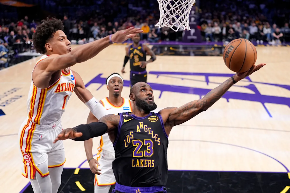 洛杉磯(美聯社)——勒布朗·詹姆斯得到 31 分。 10次助攻和9個籃板,洛杉磯湖人隊在周二晚上以141-116戰勝亞特蘭大老鷹隊,徹底結束了三連勝的頹勢。盧卡·東契奇為湖人隊貢獻27分和12次助攻,湖人隊在下半場一開始就領先32分,並在老鷹隊後期的大反彈中表現出色。自從近一年前收購東契奇以來,洛杉磯隊只遭遇過一次四連敗。在他史無前例的第23個NBA賽季中,在他首次背靠背出場的第二場比賽中,詹姆斯距離他自去年2月1日在紐約以來的首次三雙僅差一點——那天晚上湖人隊為東契奇進行的令人震驚的交易讓人們更銘記這一天。尼克爾·亞歷山大-沃克為老鷹隊拿下26分,CJ·麥科勒姆得到25分,他們在西海岸客場之旅的前兩站都取得了勝利。科里·基斯珀特在被華盛頓交易來特雷·楊後與亞特蘭大隊的第二場比賽中與麥科勒姆並肩作戰,得到 19 分。傑克·拉拉維亞和德安德烈·艾頓為湖人隊各得 17 分,湖人隊在 36 投 8 中的三分球中命中 19 個三分球,在令人尷尬的輸給薩克拉門託的比賽中。週一。儘管左腹股溝酸痛,東契奇仍堅持上場,他連續三個回合命中三分球,帶領湖人隊在第二節打出17-0的高潮。湖人隊投籃命中率接近62%,半場以81-60領先,創下半賽季最高得分。半場結束後,湖人隊以 12-1 的高潮將比分拉開,但亞特蘭大隊逐漸將分差縮小到 11 分,最終湖人隊永遠拉開比分。八村塁在因傷缺席七場比賽后,作為替補球員在有限的上場時間內拿下 7 分。克里斯塔普斯·波爾津吉斯 (跟腱) 和扎查里·里薩徹 (膝蓋) 都沒有參加老鷹隊的比賽。週四湖人隊:週四主場迎戰夏洛特隊。 ___AP NBA:https://apnews.com/NBA
