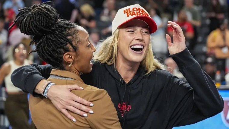 索夫·坎寧安 (Soph Cunningham) 為凱特琳·克拉克 (Caitlin Clark) 擔任球童,穿著危險的短裙